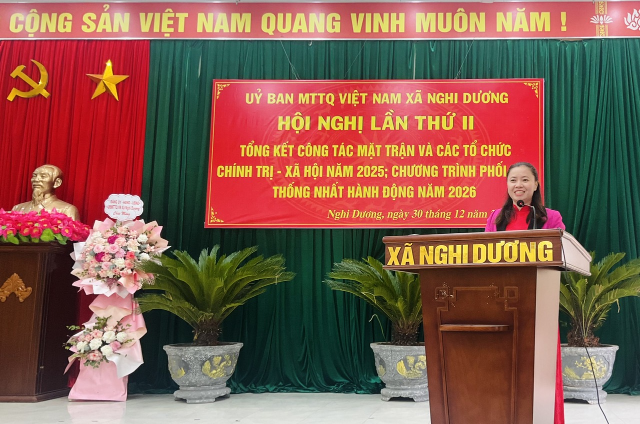XÃ NGHI DƯƠNG TỔ CHỨC HỘI NGHỊ LẦN THỨ II TỔNG KẾT CÔNG TÁC MẶT TRẬN VÀ CÁC TỔ CHỨC CHÍNH TRỊ – XÃ HỘI NĂM 2025, TRIỂN KHAI CHƯƠNG TRÌNH PHỐI HỢP THỐNG NHẤT HÀNH ĐỘNG NĂM 2026