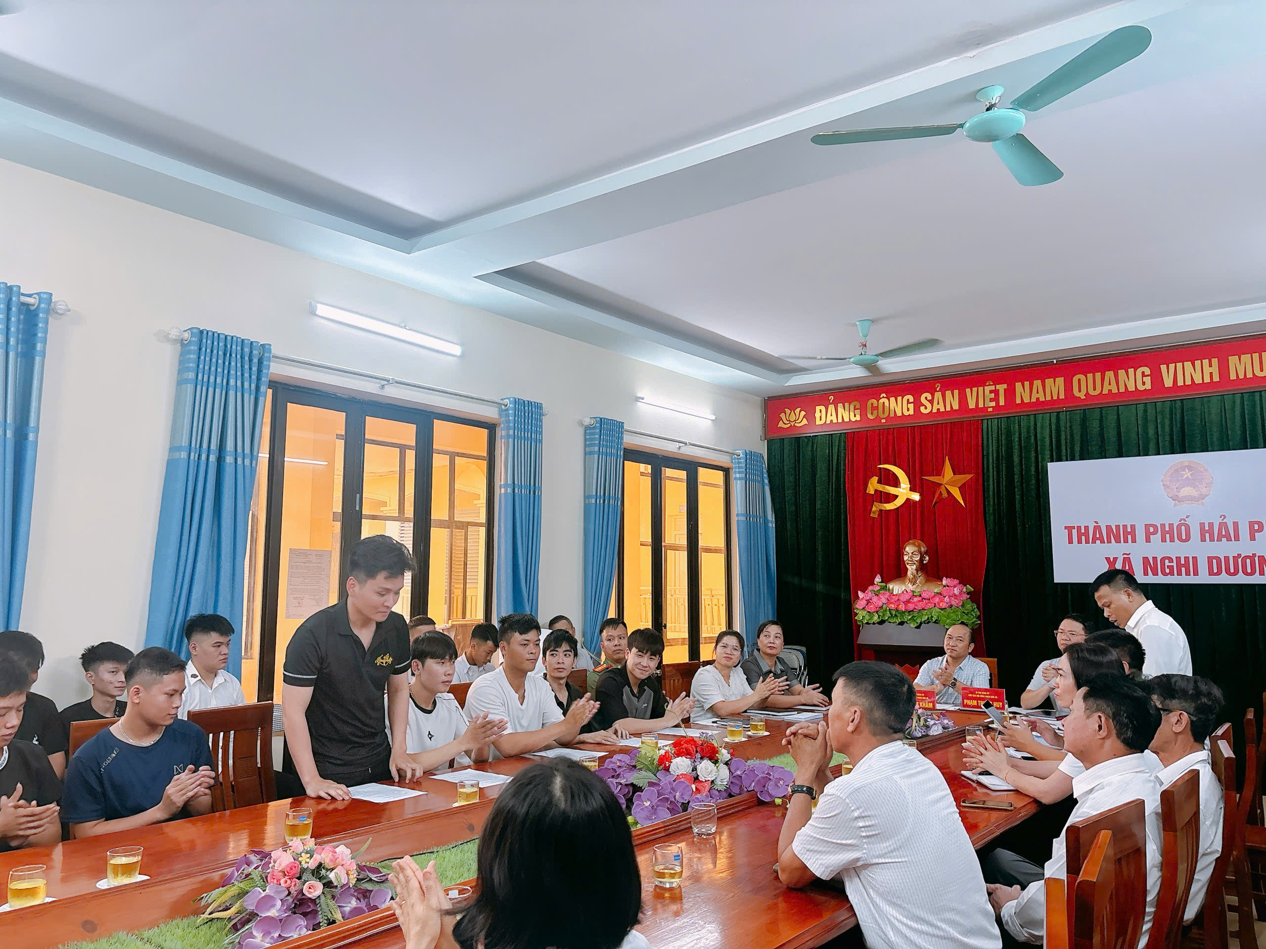 Thực hiện kế hoạch tuyển chọn và gọi công dân nhập ngũ năm 2026, chiều ngày 20/10/2025, Ủy ban nhân dân xã Nghi Dương tổ chức Hội nghị tiếp xúc, động viên thanh niên tình nguyện lên đường làm nghĩa vụ Quân sự và tham gia nghĩa vụ Công an nhân dân năm 2026.