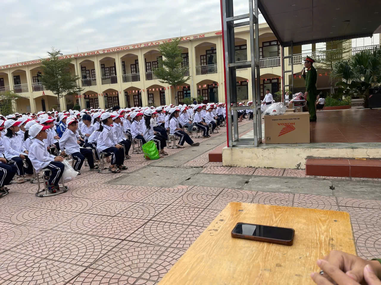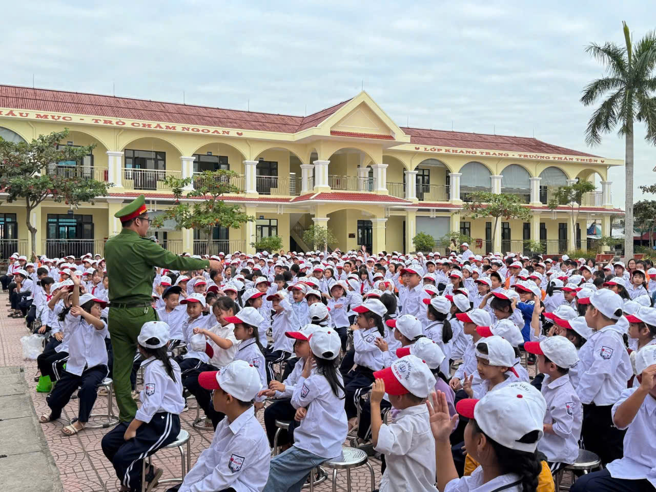 CÔNG AN XÃ NGHI DƯƠNG TỔ CHỨC TUYÊN TRUYỀN PHỔ BIẾN, PHÁP LUẬT, AN TOÀN GIAO THÔNG TẠI TRƯỜNG TIỂU HỌC KIẾN QUỐC