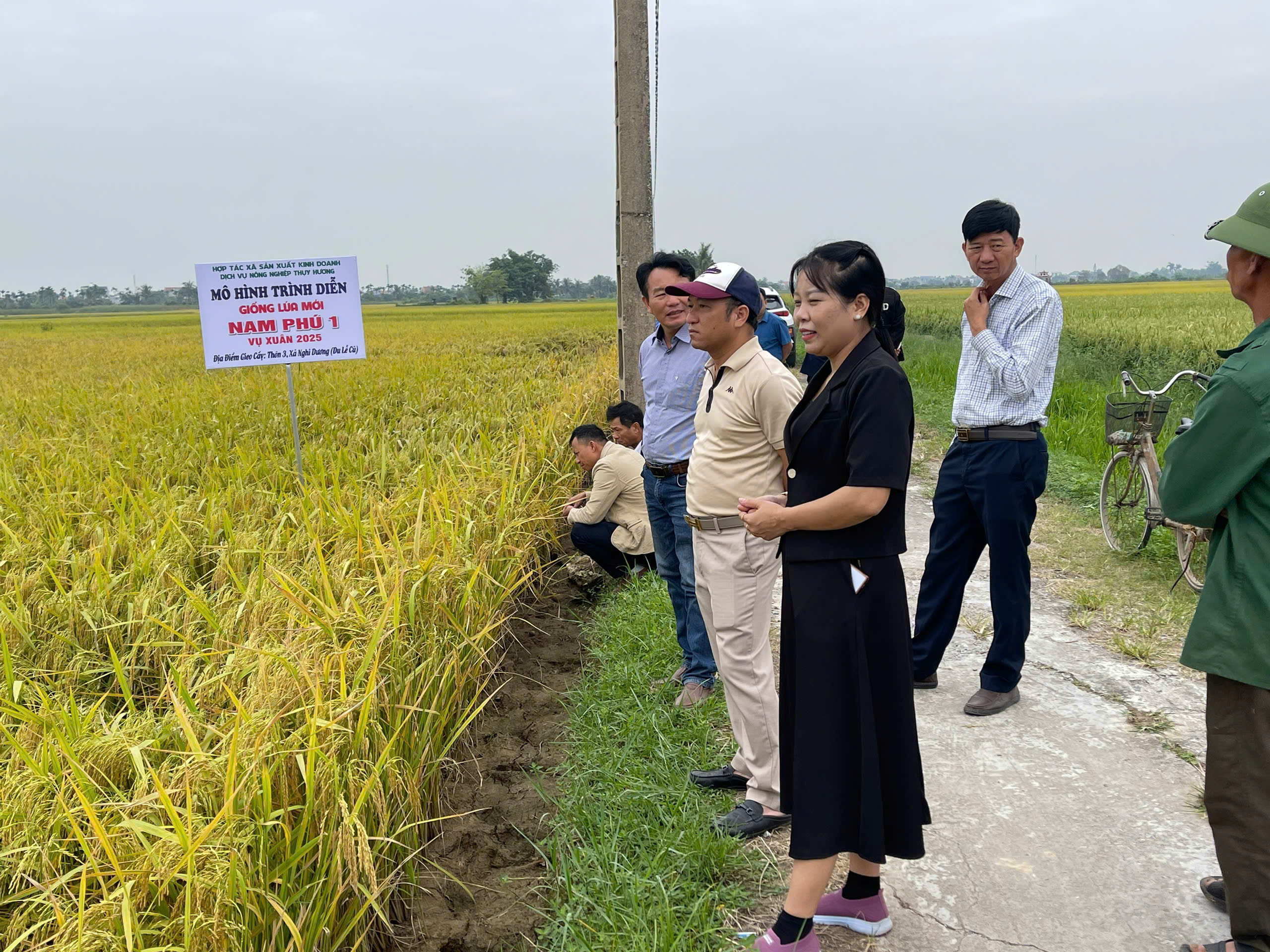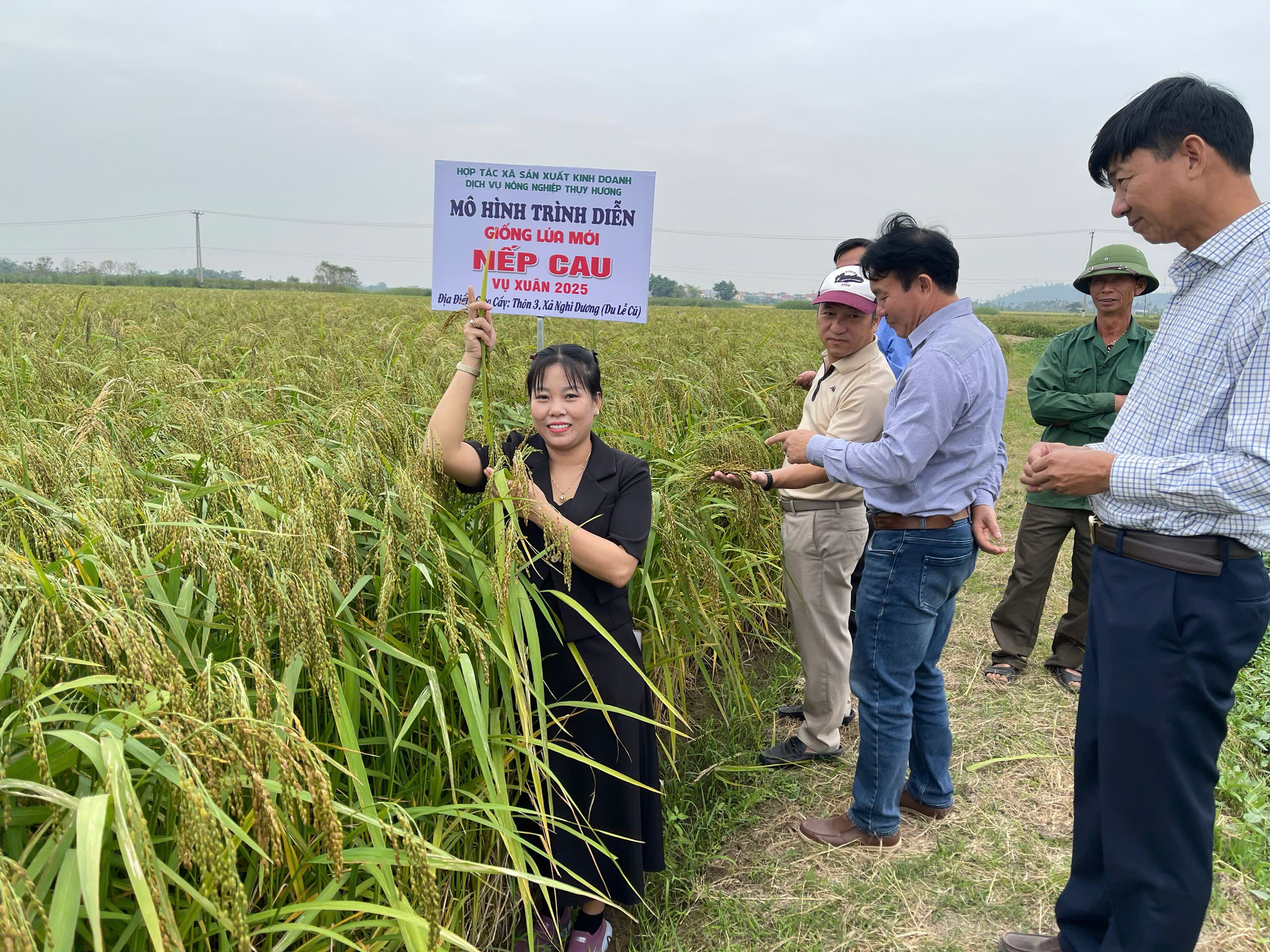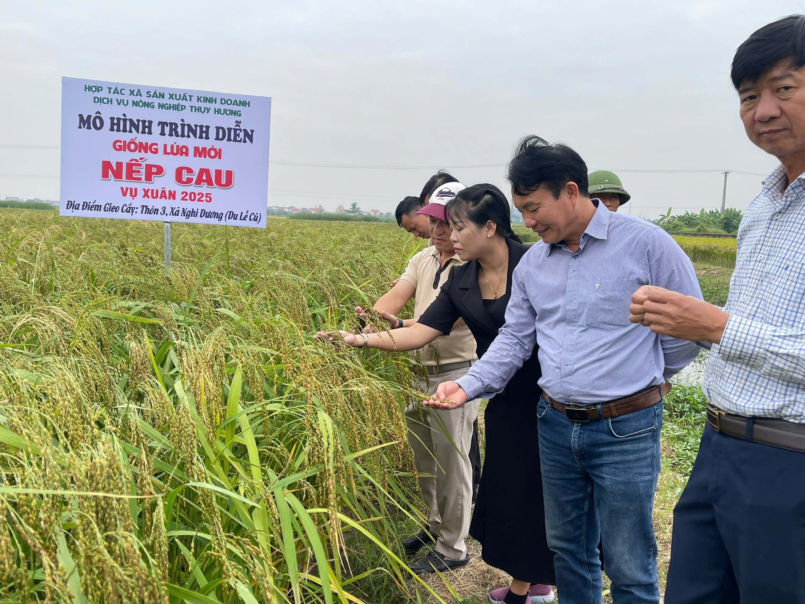 Thực hiện chủ trương đẩy mạnh ứng dụng các tiến bộ khoa học kỹ thuật vào sản xuất nông nghiệp. Chiều ngày 25/10/2025, đồng chí Ngô Duy Khâm – Chủ tịch UBND xã Nghi Dương đã đến thăm và kiểm tra mô hình trình diễn giống lúa mới Nếp Cau vụ Xuân năm 2025 do Hợp tác xã Sản xuất Kinh doanh Dịch vụ Nông nghiệp Thụy Hương triển khai thực hiện tại xứ đồng Thôn 3 Du Lễ, xã Nghi Dương. Tham gia cùng đoàn có đại diện Ban Nông nghiệp xã, cán bộ khuyến nông và các hộ nông dân trực tiếp tham gia mô hình.