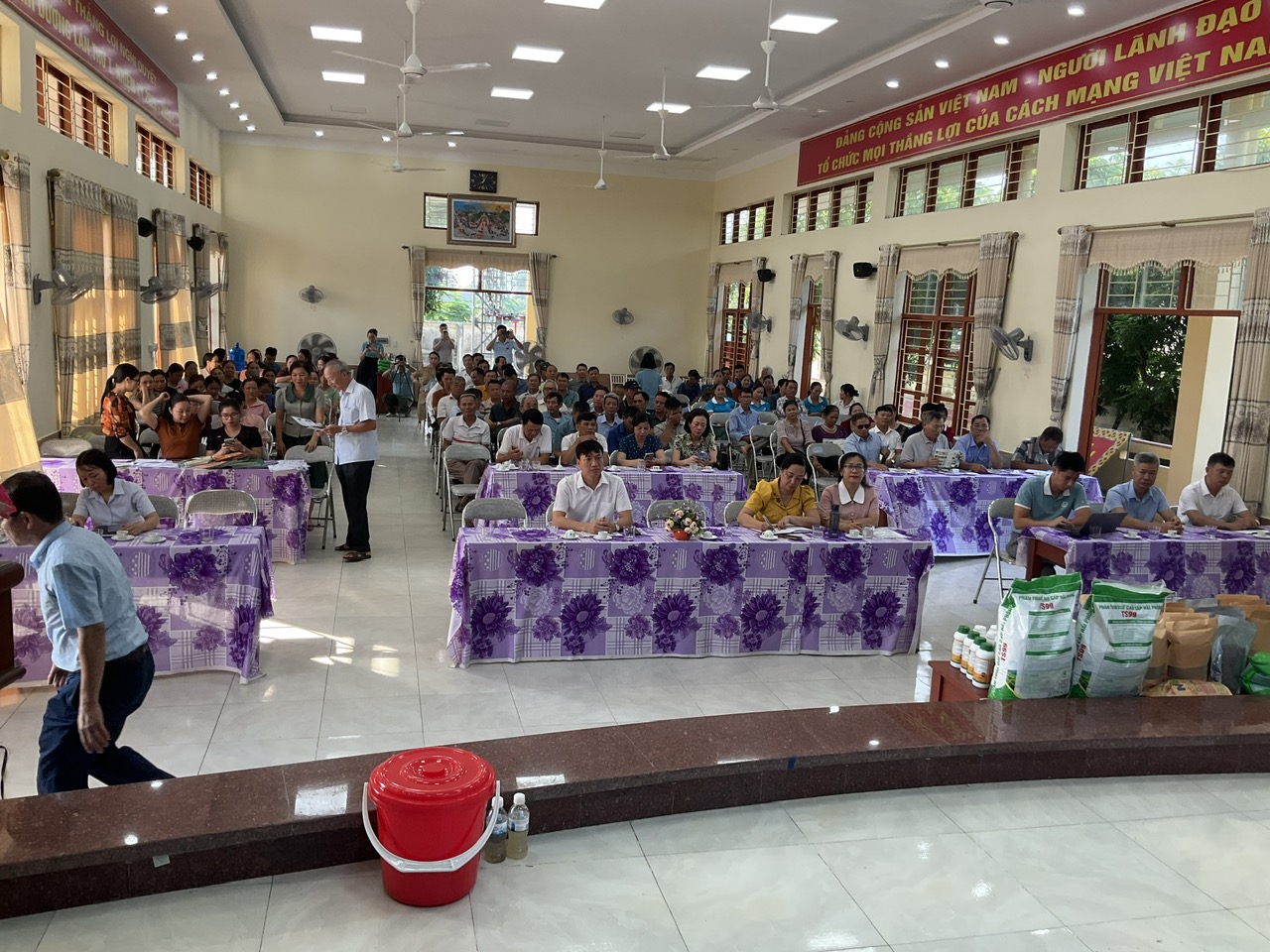 Đồng chí Phạm Thị Thủy - Chủ tịch Hội nông dân xã tuyên truyền về nội dung Phân loại rác thải tại nguồn Tham dự Hội nghị có các đại biểu: Đồng chí Nguyễn Quang Trung - Trạm trưởng khuyến nông khu vực 5- Đại diện Trung tâm Khuyến nông Thành phố: Đồng chí Đào Văn Tuân – Phó Chủ tịch Thường trực UBND xã, cùng các đồng chí lãnh đạo HĐND, UBND, Ủy ban MTTQ Việt Nam xã; đại diện các ngành, đoàn thể, cán bộ chuyên môn; đại biểu các thôn dân cư, Trưởng ban công tác mặt trận, Bí thư chi bộ, Trưởng thôn, các tổ thu gom rác thải và nhân dân trên địa bàn. Tại Hội nghị, các đại biểu đã được nghe Đồng chí Phạm Thị Thủy – Chủ tịch Hội Nông dân xã phổ biến quy định về phân loại rác thải sinh hoạt tại nguồn; hướng dẫn cách phân loại rác hữu cơ, vô cơ, tái chế; mô phỏng minh họa mô hình phân loại rác tại hộ gia đình và cộng đồng dân cư. Đồng chí Đỗ Đăng Phú - Giảng viên Công ty TNHH nông nghiệp Sông Gấm giới thiệu chuyên đề “Ứng dụng chế phẩm sinh học trong xử lý môi trường, chế phụ phẩm nông nghiệp”, nhằm giúp người dân tận dụng nguồn phụ phẩm trong sản xuất nông nghiệp, giảm thiểu ô nhiễm, bảo vệ sức khỏe và môi trường sống.