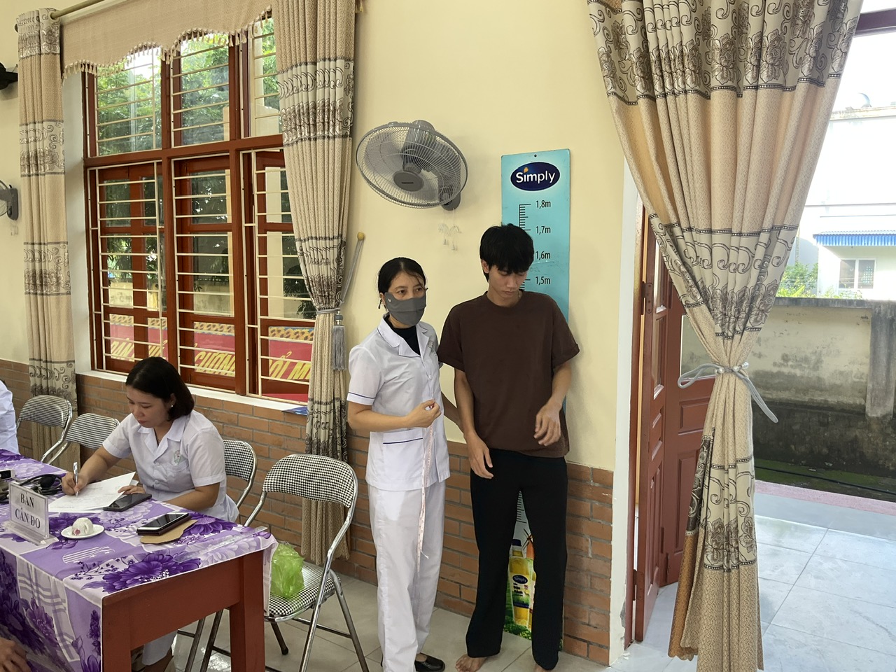 Ngay từ sáng sớm, các đồng chí lãnh đạo Đảng ủy, HĐND, UBND, Ủy ban MTTQ xã, cùng các ban, ngành, đoàn thể đã có mặt động viên các thanh niên thực hiện khám sơ tuyển sức khỏe nghĩa vụ quân sự xã.