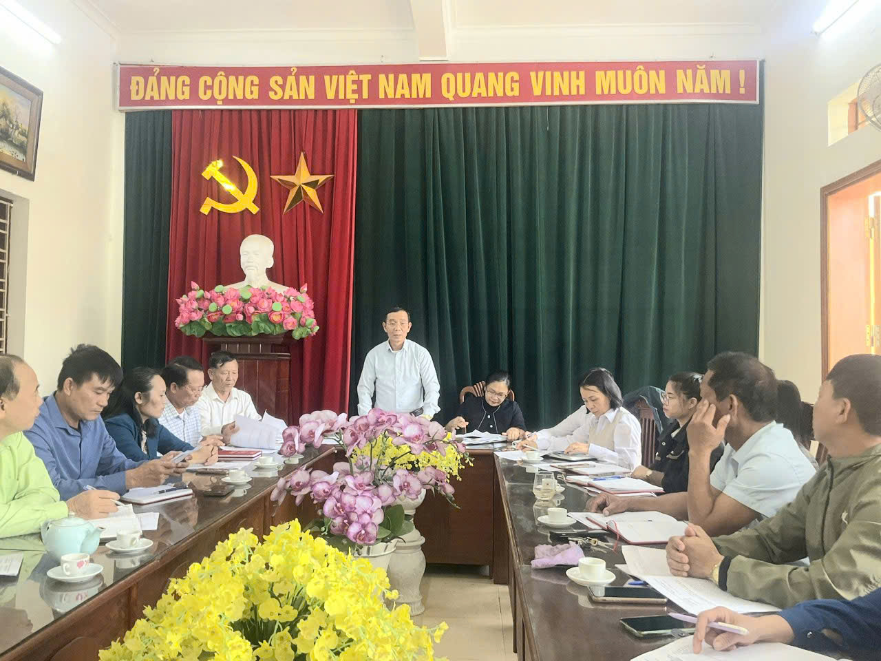 Dự và chỉ đạo hội nghị có đồng chí Phạm Văn Tùy- UVBTV, Chủ tịch UBMTTQVN xã; đồng chí Lưu Thị Tươi- UVBTVĐU, Phó Chủ tịch UBND xã cùng các đồng chí đại diện lãnh đạo Phòng Văn hóa – Xã hội, Trung tâm sự nghiệp công; Ban Thường trực và chuyên viên cơ quan UBMTTQ xã; cùng các Trưởng ban công tác Mặt trận các thôn.